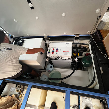 From the very beginning, we were invited to the Mylius shipyard to oversee the build process together with Simone Repetti, the head of the technical department at Mylius Yachts. Our role was to review each technical aspect in detail, ensure everything aligned with the owner’s expectations, and provide our professional input on potential improvements and recommendations.